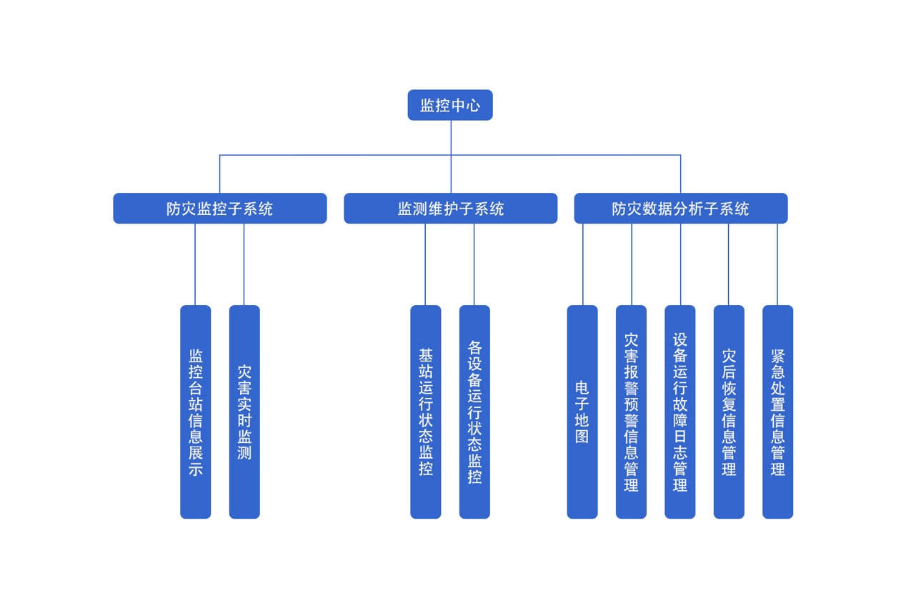 監(jiān)控中心能夠?qū)Ψ罏?zāi)監(jiān)測區(qū)域內(nèi)進(jìn)行全方位的災(zāi)害監(jiān)測及預(yù)警,對各個(gè)監(jiān)測設(shè)備進(jìn)行全方位、多層次的監(jiān)控和管理。對監(jiān)控設(shè)備運(yùn)行狀態(tài)實(shí)時(shí)監(jiān)測,同時(shí)對接收到的報(bào)警、預(yù)警信息進(jìn)行展示,實(shí)現(xiàn)電子地圖自動定位、多點(diǎn)災(zāi)害預(yù)測定位,自動化災(zāi)害緊急處置、設(shè)備故障日志查詢、災(zāi)害報(bào)警預(yù)警數(shù)據(jù)查詢導(dǎo)出、實(shí)時(shí)監(jiān)測等功能。